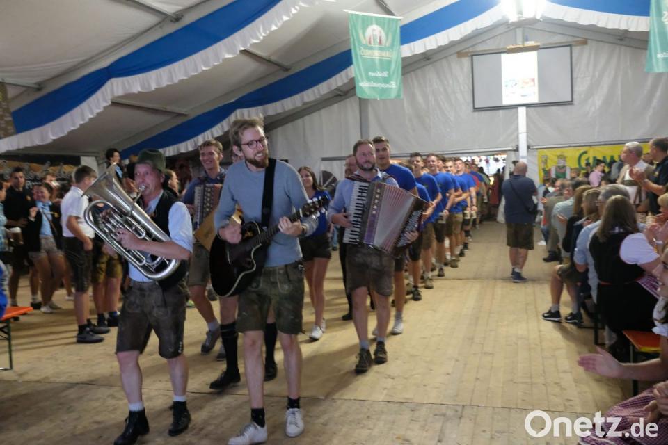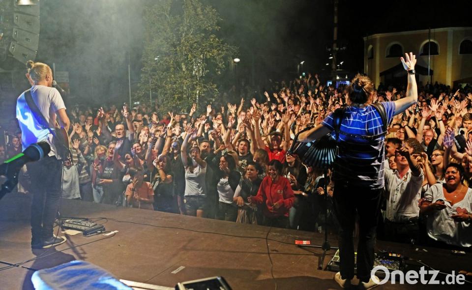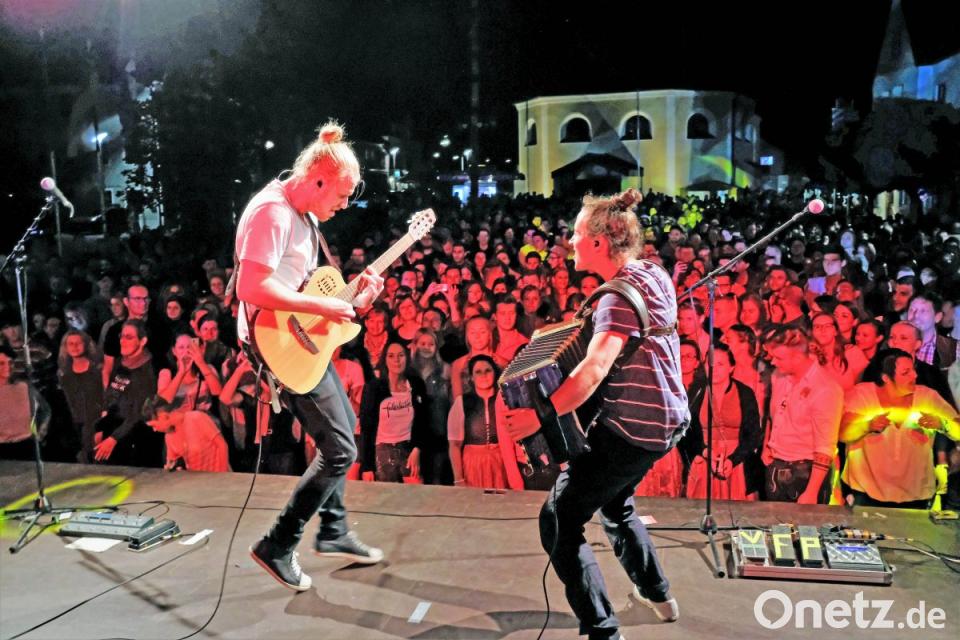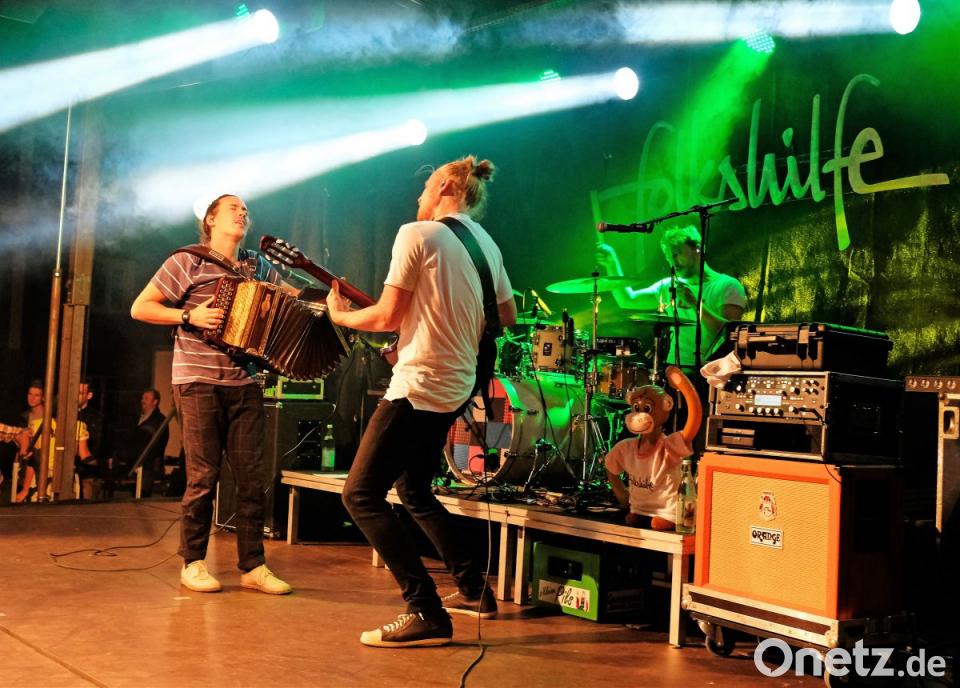 Nach einem kurzem Umbau auf der Bühne begann "Folkshilfe" mit Volldampf. Die Musiker hatten die Zuhörer mit dem Reggae "Heit bin i wer" gleich auf ihren Seite . Von den dicht gedrängten Fans vor der Bühne schienen die meisten die Texte zu kennen. Sie sangen nicht nur bei den Ohrwürmern "Seit a poa Tog" , "Mir laungts" oder "Summa Sun" mit. Frontman und Quetschn-Spieler Florian Ritt bestach nicht nur mit seinem fetzigen Spiel, sondern auch durch seine witzigen Ansagen.