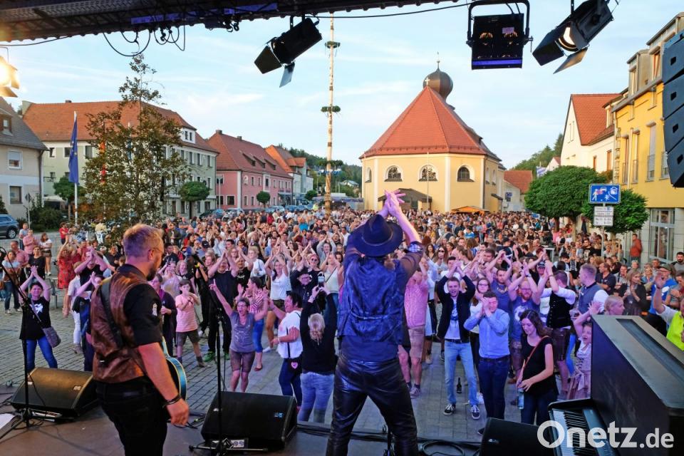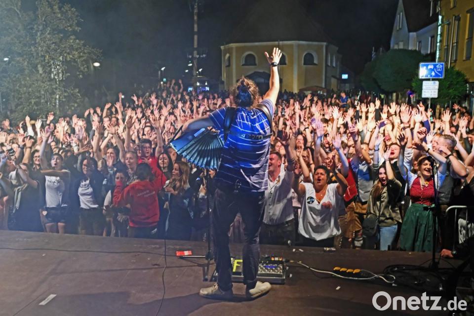 Zwischen Straße und Raiffeisenbank, Meillinger und Kirche standen die Fans so dicht gedrängt, das man sich nur noch an der Seite bewegen konnte. Als dann "Maria Dolores - schönste Stimme des Jugendchores" erklang, waren die Fans total aus dem Häuschen und der ganze Marktplatz sang mit. Ohne Pause ging es weiter mit "Schene Lady" oder "Karl und Resi". Mit der melodiösen Ballade "Is no wer do" beendeten sie ihr mitreißendes Programm und ließen restlos begeisterte Fans zurück.