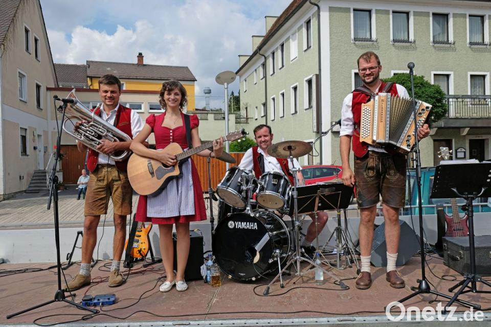 Schon bei der Vorband "Gringo Bavaria", die schon im Vorjahr beim "La Brass Banda" Konzert begeistern konnte, bebte der mit Zuhörern total gefüllte Marktplatz. Ihr "Gute-Laune-Rock" in Mundart - eine Mischung aus Rock 'n' Roll und Classic-Rock, angereichert mit swingenden Stücken und gefühlvollen Balladen zum Mitsingen - kam beim Publikum sehr gut an