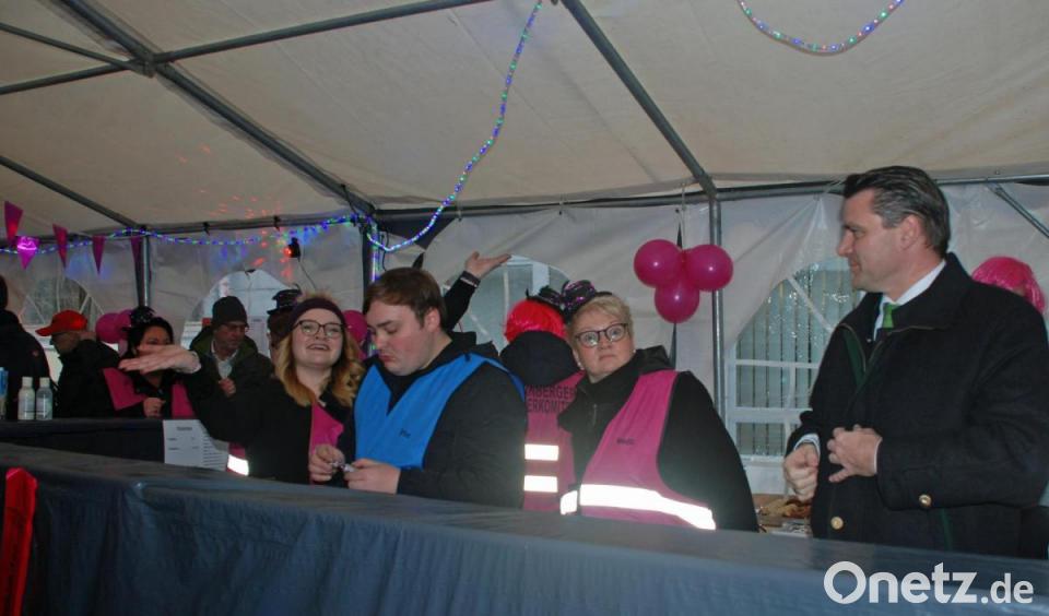 Natürlich hatte die Sprecherin des "Wernberger Weiberkomitees" ihre Begrüßung in einen Reim gepackt, der da lautete: "So viele Narren sind gekommen, das ist so schee, gern begrüße ich euch im Namen vom Weiberkomitee! Ich bin ganz außer Rand und Band, es ist so schnell die Zeit verrannt, heut das zweite Rosenmontagstreiben am Marktplatz hier, bei Essen, Spirituosen und sogar Wernberger Zoiglbier! Politiker, närrisches Volk und auch der Bürgermeister haben sich schon eingefunden und drehen hier bei uns ihre Runden!" Ihr Dank galt auch allen Spender, der Marktgemeinde, dem Bauhof sowie den Vereinen und weiteren Mitwirkenden, die oftmals im Stillen tatkräftige Unterstützung leisteten. So haben beispielsweise der Kirwa-Verein, der Siedlerbund, der FC-Bayern-Fanclub und die Feuerwehr Neunaigen wieder allerlei Equipment t zur Verfügung gestellt, der CSU-Ortsverband beteiligte sich erstmals mit einem Kinderkarussell, der Frauenbund Wernberg spendierte wieder Süßigkeiten für die Kleinen, die FC-Jugend kümmerte sich mit um die Bewirtung und Geschäftsleute unterstützten die Aktion ebenfalls.
