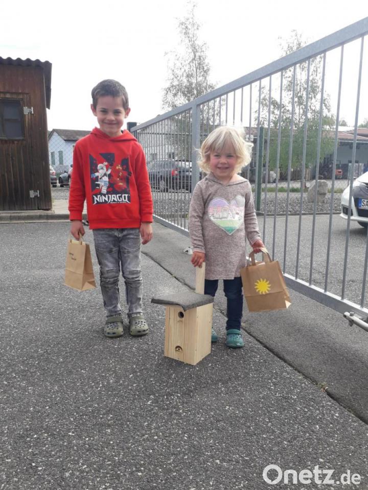 Die Wernberger-Werkstätten haben mit ihren Bewohnern Vogelhäuschen gebaut, die die Kinder bemalen und behalten durften. Werkstattleiter Florian Dotzler freute sich über die strahlenden Kinderaugen.