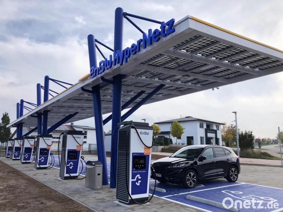 Es ist bereits der sechste Schnelladepark in Bayern, den EnBW (Energie Baden-Würtemberg AG) gebaut hat. Am neuen Großstandort im Gewerbegebiet West laden E-Autos an zwölf Schnellladepunkten mit einer Leistung von bis zu 300 Kilowatt.