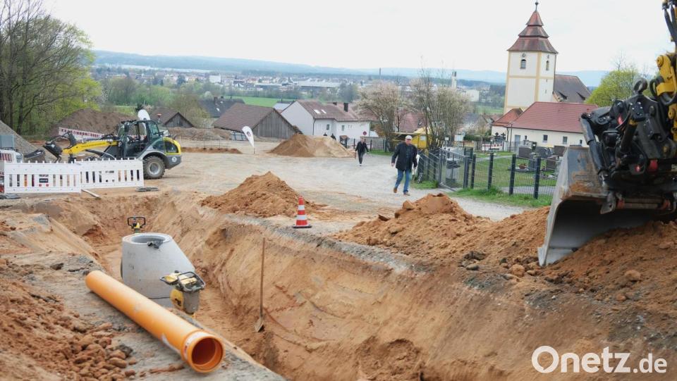 Michael Wagner, Abteilungsleiter „Tiefbau“ am Ingenieurbüro Schultes in Grafenwöhr, erläuterte beim Spatenstich die Erschließungsmaßnahmen. Die 25 ausgewiesenen Parzellen sind zwischen 700 und 900 Quadratmeter groß. Geplant sind drei Blöcke mit je fünf Wohneinheiten sowie Ein- und Mehrfamilienhäuser und Doppelhaushälften. „Bei der Gestaltung der Gebäude lassen wir den Bauherren weitgehend freie Hand“, versicherte der Planer. Bis zum Ende des Jahres soll das Gebiet mit Kanal, Straßen, Strom, Breitband und Telefon erschlossen sein. Das Oberflächenwasser wird ein Regenrückhaltebecken auffangen. „Ab Anfang des nächsten Jahres kann gebaut werden“, verspricht Bürgermeister Konrad Kiener. Mit der Bekanntgabe der Grundstückspreise hält er sich noch zurück. „Wir müssen erst die endgültigen Erschließungskosten abwarten“, so der Rathauschef. Dafür seien derzeit 3,6 Millionen Euro veranschlagt. Bewerbungen für das Baugebiet liegen bereits vor. Ansprechpartner für Interessenten sind Kiener und Geschäftsleiter Andreas Wittmann.