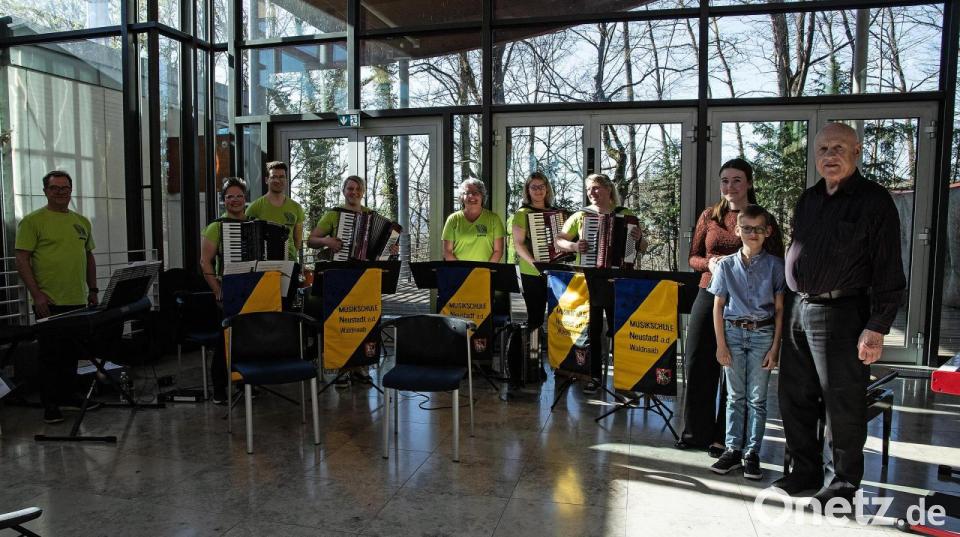 Das Konzert begann demnach beschwingt mit einem Medley aus „Musik ist Trumpf“, „Sentimental Reflection“ und „Abba-Melodien“. Das Akkordeonorchester, bestehend aus fünf Akkordeonspielerinnen, einem Schlagzeuger und Jürgen Eckert am Keyboard, gestaltete diesen Auftakt. Es folgte der Soloauftritt des jungen Musikers Philipp Witt an der Steirischen Harmonika, der Melodien von S. Avsenik wie „Auf der Autobahn“ und „Slowenischer Bauerntanz“ darbot.