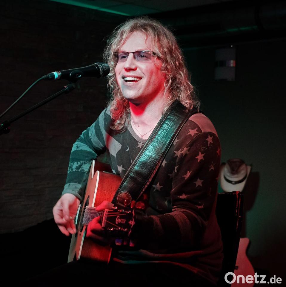 Im Musik-Café "B 14" ist Mathias Kiener als "MK Unplugged" auf der Bühne und er legt gleich los mit Rock-Krachern aus seiner geliebten Rock-Ära. Seine Akustikgitarre wird rhythmisch unterstützt von einer "Stomp-Box" und gelegentlich von einem "Looper". Dazu ertönt natürlich seine kräftige, rockige Stimme.