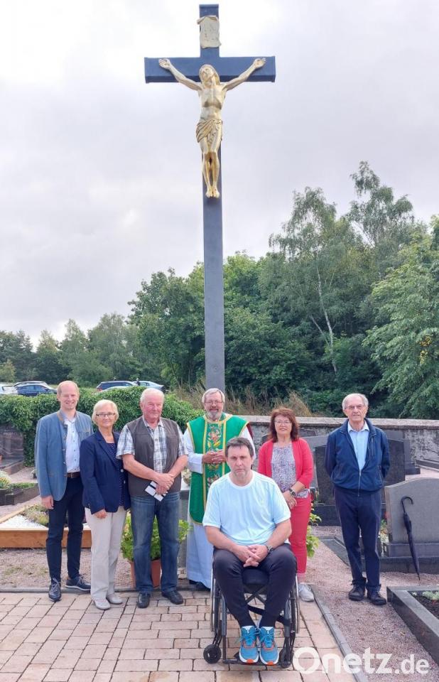 Nach fast 80 Jahren wurde dieses Friedhofskreuz im Jahr 1963 restauriert. Maßgeblich daran beteiligt war der Malermeister Bruno Jung aus Wohlsbach. Der Corpus wurde mit Doppeldukatengold (24 Karat) vergoldet. Die gesamte Maßnahme kostete zum damaligen Zeitpunkt 411 DM, was heute einem Kostenaufwand von etwa 3000 Euro entspreche, so Josef Eimer.