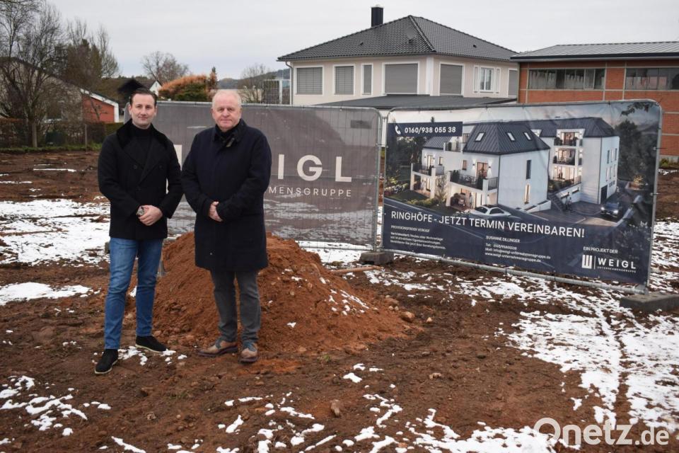 Zusammen mit dem Dritten Bürgermeister Dieter Rosenberg gab Investor Maximilian Weigl am Donnerstag den offiziellen Startschuss für zwei moderne Mehrfamilienhäuser mit insgesamt 14 Wohneinheiten und gemeinsamer Tiefgarage. Die Marktresonanz ist eindeutig: Sämtliche Wohneinheiten wurden bereits vor Baubeginn an einen institutionellen Käufer veräußert und werden künftig als Mietwohnungen zur Verfügung stehen. „Mit den Ringhöfen schaffen wir substanzielle, energieeffiziente Wohnräume und leisten einen konkreten Beitrag zur Entlastung des regionalen Wohnmarktes“, erläuterte Geschäftsführer Maximilian Weigl.