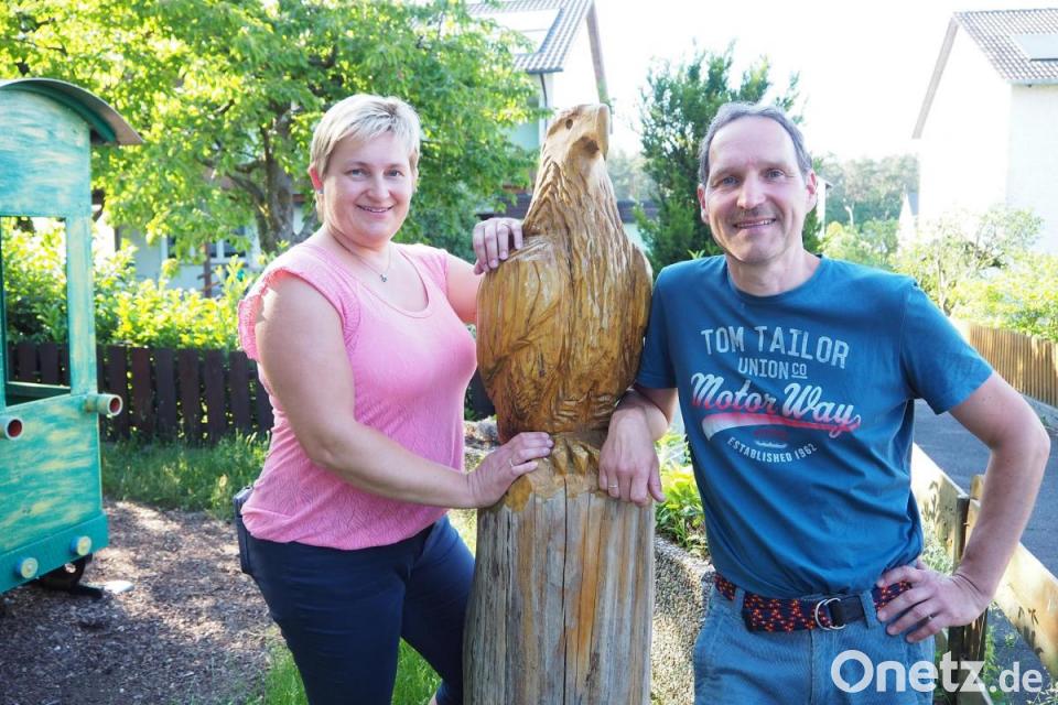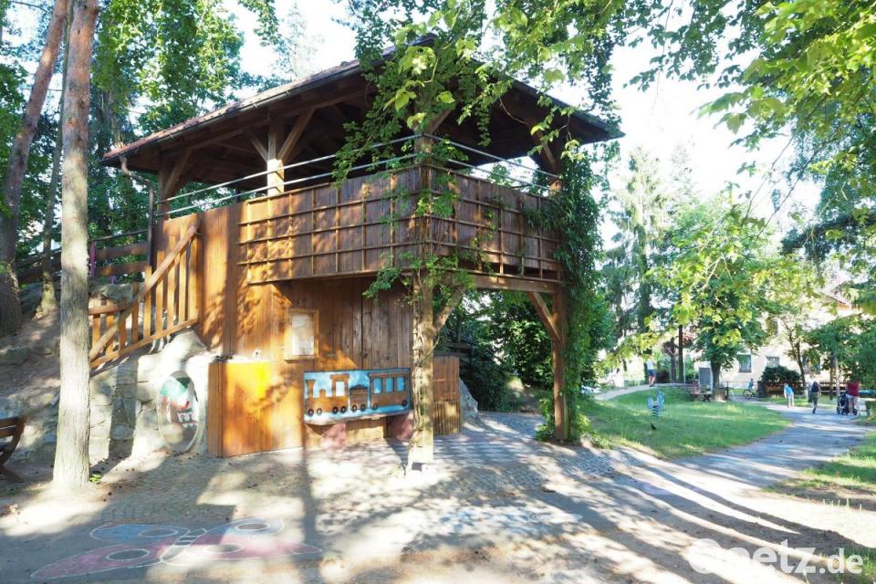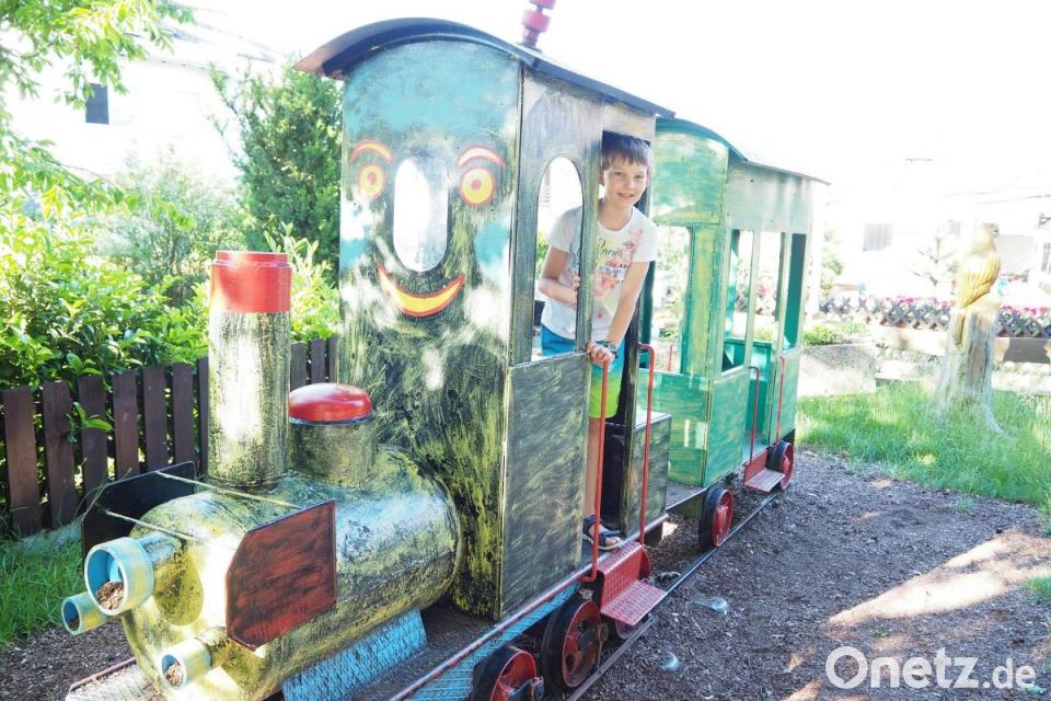 Für Reparaturen gibt es sogar eine kleine Werkstatt im hinteren Teil des Geländes. Was an Arbeit anfällt, teilen sich etwa 30 aktive Helfer, an Thomas Schlosser liegt es, das Ganze zu organisieren. "Meistens arbeitet die ganze Familie mit", stellt der 51-Jährige fest und verweist auf fleißige Kuchenbäckerinnen oder Tochter Paula, die hier längst nicht mehr spielt, aber für die Nikolaus-Aktion als Engel agiert. "Es gibt auch noch ein paar Wenige, die von Anfang an dabei waren und jetzt mit ihren Enkeln kommen." Dann können sie feststellen, dass der alte Metall-Zug noch steht, mit neuem Anstrich und blockierter Ofentür, damit sich der Nachwuchs nicht die Finger einzwickt. Die Lok darf bleiben, auch wenn in nicht allzu ferner Zukunft ein Baumhaus gebaut wird. Das haben sich die Kinder in einer Umfrage gewünscht. Vielleicht kommt auch bald eine Kletterwand anstelle der Reifentreppe. Projekte gibt es genug. Was realisiert wird, hängt vor allem von den Spenden ab. Weil sich auch nicht jeder Baum ins nächste Jahrzehnt retten lässt, haben die Spielplatzfreunde für drei solcher Fälle einen Baumschnitzer engagiert. Er hat aus dem verbliebenen Stamm-Rest ein Tier gezaubert,. Der übrige Spielplatz-Zauber obliegt Familie Schlosser und dem Helfer-Team, das mit Blick auf die nächste Spielplatz-Generation schon eine Neupflanzung geplant: Baumspender erwünscht.