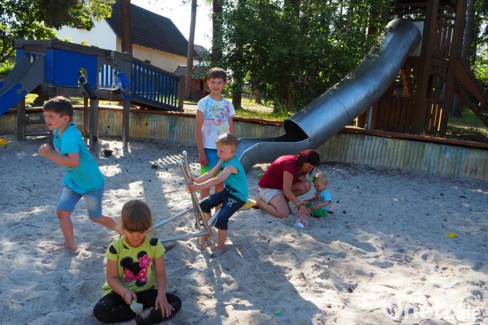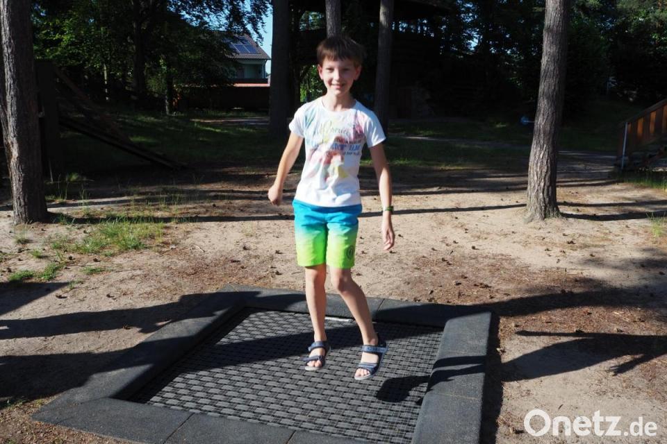 Die Bäume, die sind unser Alleinstellungsmerkmal", sagt Michaela Schlosser, die zusammen mit ihrem Mann die Errungenschaften aus jüngerer Zeit vorstellt. Dazu gehört das Trampolin aus vandalismussicherem Gewebe, das fest in den Boden eingelassen ist. Sohn Tim demonstriert, wie gut es sich darauf hüpfen lässt. Mit elf Jahren ist er dem Spielplatz schon fast entwachsen. Auf der Seilbahn neben dam Sand-Areal schwingen sich schon Knirpse im Kindergartenalter in atemberaubenden Tempo durch die Luft.
