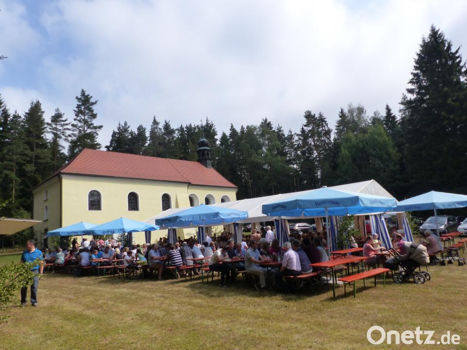 (fsc) Die vorbereiteten Sitzgelegenheiten innerhalb eines kleinen Zeltes und daneben waren sehr schnell vergeben. Der Bratwurstgrill lief auf Hochtouren, an der „Zapfsäule“ hatte man alle Hände voll zu tun und die Mitglieder KLJB waren fleißig um den Nachschub bemüht. Im Schatten des Zeltes hatte die Blaskapelle Ernestgrün in voller Besetzung Platz genommen und erfreute unter der musikalischen Leitung von Klaus Rustler die Gäste mit ihrem bekannten und vielgeliebten „Sound“.