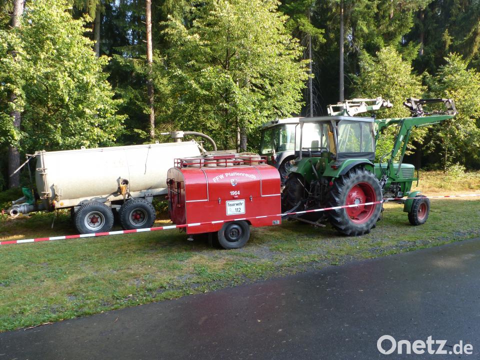 Von vielen Besucher wohl gar nicht wahrgenommen: rund um die Waldlichtung standen schwere Traktoren mit noch größeren Güllefässern un eine erweiterte Abgrenzung der Parkfläche zu Waldrand hin. Eine Vorsichtsmaßnahme der Feuerwehren Wernersreuth und Pfaffenreuth. Rund 30.000 Liter Wasser standen in drei Güllefässern der Wernersreuther Landwirt für einen schnellen Bedarf zur Verfügung und der Tragkraftspritzen-Anhänger aus Pfaffenreuth hatte die Gerätschaften für einen eventuellen Einsatz dabei.