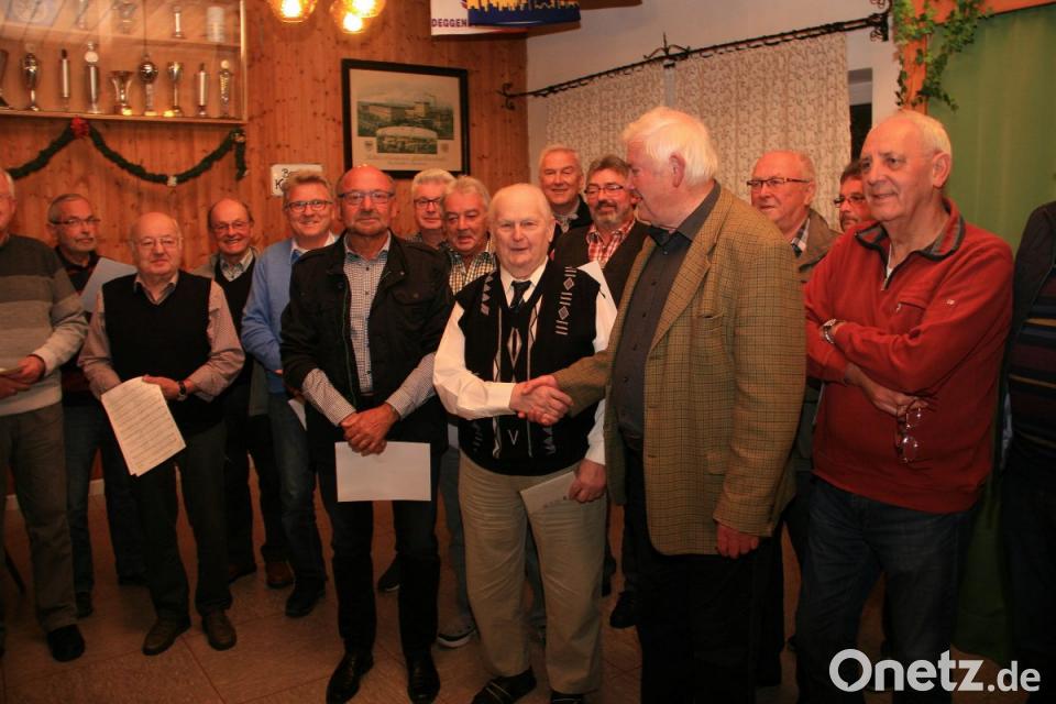 Der Einladung zum Jubelfest folgte auch der Reisetaubenverein "Sturmvogel". Der "Bayerische Hof" sei seit der Vereinsgründung in den 1920er Jahren Stammlokal und Einsatzstelle, ließ Gastgeber Hans Bayer in seiner Eröffnungsrede verlauten. Der Gesangverein Schönhaid, der ebenso gratulierte, hält einmal im Monat dort seine Singstunde ab. Dankbar dafür, dass man für die Probenstunden das Nebenzimmer nutzen darf, brachte die Liedertafel unter der Leitung ihres Dirigenten Gottfried Hofmann gleich ein Ständchen dar. Im Namen der Sänger überreichte Vorsitzender Erich Trottmann ein Kuvert.