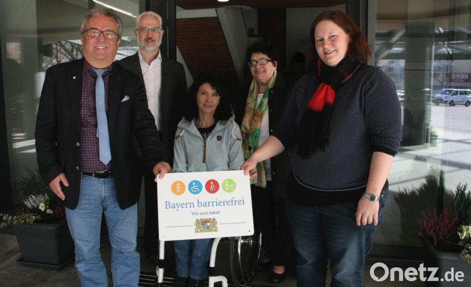 „Wir werden das Signet gut sichtbar am Rathaus anbringen“, versprach Bürgermeister Toni Dutz im Beisein von Behindertenbeauftragter Irmgard Hegen, Geschäftsleiter Thomas Weiß sowie Christina Ponader und Doris Scharnagl-Lindinger.