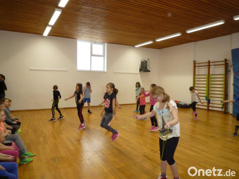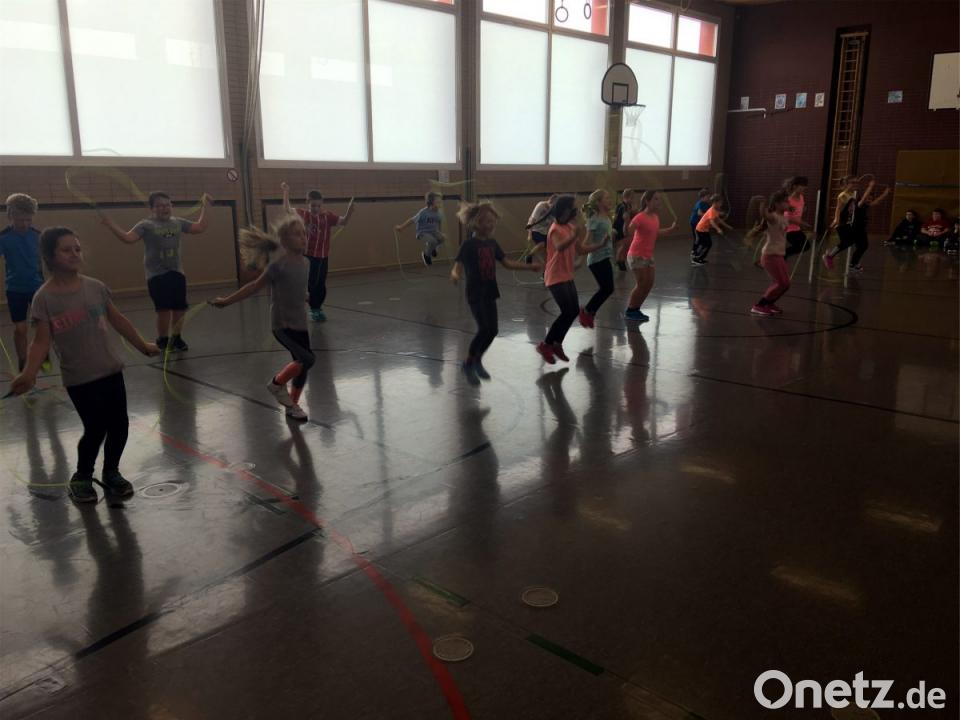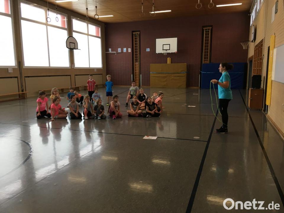 Die Lehrkräfte Julia Greger und Anita Kleeberger hatten Melanie Schrenk von der Deutschen Herzstiftung an die beiden Grundschulen eingeladen. Sie brachte die Dritt- und Viertklässler richtig zum Schwitzen, indem sie ihnen in zwei Schulstunden die Grundlagen des Rope-Skippings beibrachte. Hierbei handelt es sich um verschiedenste Techniken des Seilspringens, die alleine, mit einem Partner oder auch in der Gruppe ausgeführt werden können. Direkt im Anschluss an das abwechslungsreiche Trainingsprogramm, das alle sichtlich begeisterte, durften die Mädchen und Jungen ihren Eltern und Mitschülern sowie Schulleiterin Inge Dick in einer kurzen Vorführung zeigen, was sie gelernt hatten. Als Abschluss konnten alle interessierten Schüler und Eltern die verschiedenen Seile selbst ausprobieren. Alle hatten einen Riesenspaß und konnten sich richtig auspowern.