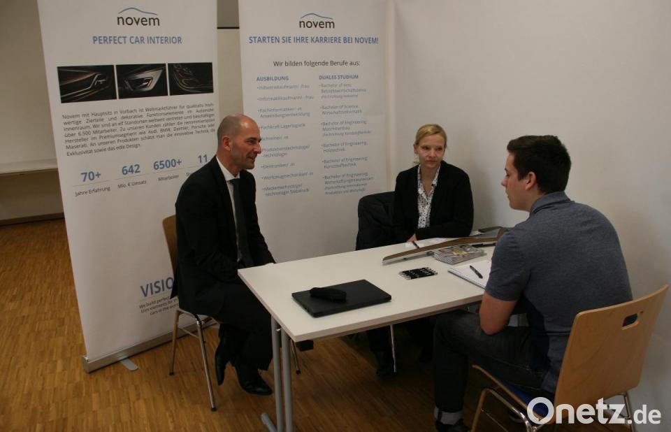 Die ursprünglich nur als Nachmittagstermin ins Leben gerufene Veranstaltung hat sich inzwischen zu einer zweitägigen beruflichen Kontaktmesse, einem Speed-Dating ähnelnd, entwickelt. „Steigend ist auch das Besucherinteresse“, informierte Dr. Hermann Körner mit Blick auf die Vorjahreszahlen. An 28 Informationsständen, die von regionalen Firmen betreut wurden, machten sich 55 Absolventen und 50 EDV-Schüler aus den elften Klassen ein detailliertes Bild über das aktuelle Angebot, in dem neben Arbeits- auch begehrte Praktikumsstellen in den Mittelpunkt rückten. Begleitet wurden die Tage auch von Fachvorträgen von Referenten aus den Reihen der sich vorstellenden Unternehmen. In den Vortragspausen waren die aufgebauten Infostände ein stets willkommener Anlaufpunkt, an denen zudem auch persönliche Fachgespräche angeboten wurden.