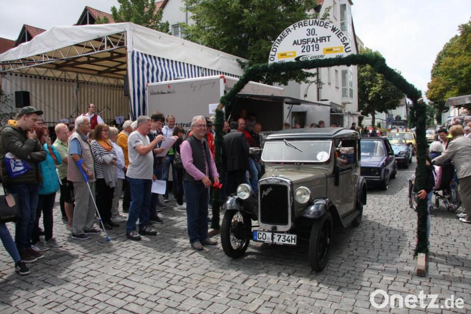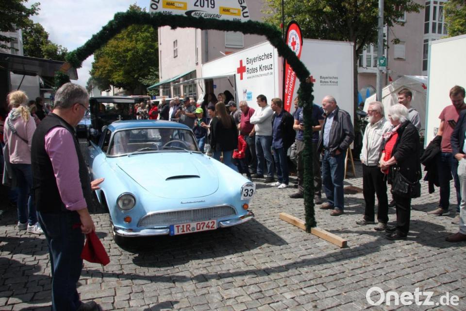 Ein Blick hinter das Rathaus verriet: Auch beim 18. Bürgerfest durfte die ADAC-Oldtimer-Ausfahrt des MSC Wiesau nicht fehlen. Am Startplatz Bürgermeister Toni Dutz, an seiner Seite „Renn- und Ausflugsleiter“ Vorsitzender Franz Höcht, der die Teilnehmer und ihre Fahrzeuge vorstellte. Der Konvoi aus rund 30 Autos und 10 Motorrädern machte sich am Nachmittag für den Rundkurs bereit, der die zwei- und vierrädrigen Oldtimer ins „Land der 1000 Teiche“ führte.