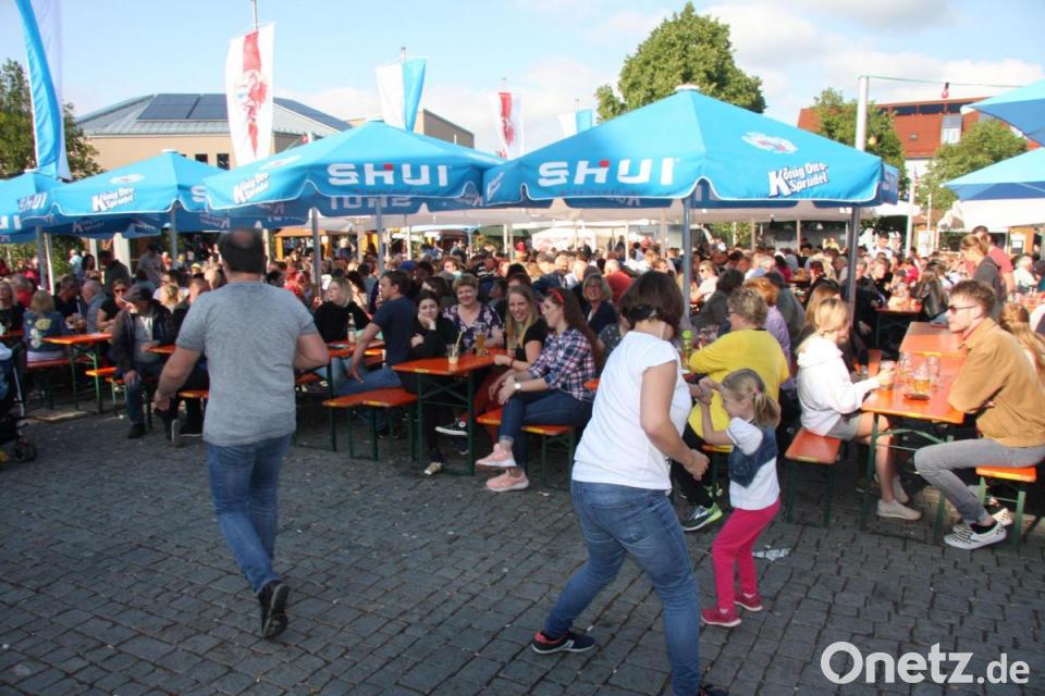 Für Unterhaltung sorgte noch einmal auch „Temptation“. Spaß hatten zudem die Buben und Mädchen, die sich in den Karussells, einer Hüpfburg, im Schmink- und Spickerstand die Zeit vertrieben. Bald leergeräumt war die Tombola mit Stofftieren als Losgewinn. Bücher aus dem Antiquariat der Gemeindebücherei gingen für wenig Geld über den „Ladentisch“, während Bürgermeister Toni Dutz reihum wanderte, um sich zu unterhalten. Seinen Ausklang fand das Bürgerfest mit den „Havlicek Brothers", die den Marktplatz in eine Tanzfläche verwandelten. Zum farbenprächtigen Höhepunkt wurde das Feuerwerk, das weithin zu sehen war.