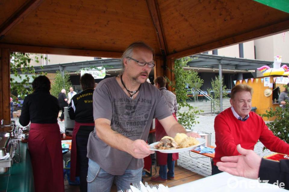 Mit einem Sonntagsfrühschoppen, den der Musikverein Wiesau auf der Festbühne umrahmte, startete man in den letzten Tag des Fests. Dabei durften Weißwürste, auch die eine oder andere Schafkopfrunde nicht fehlen. Langsam füllten sich die Buden, wo die Vorbereitungen anliefen. Bratwürste und Steaks wurden gegrillt, Schweinebraten, Knödel und Kraut ließ der Schützenverein anrollen. Es herrschte emsiges Treiben, breitgefächert war das Angebot. Geschnetzeltes mit Pfifferlingen konnte man in den Töpfen der Hotel- und Tourismusfachschule sehen. Salate und Weißbrot wurden beim Obst- und Gartenbauverein vorbereitet, um die Genießer, die sich zusehends einfanden, zu verwöhnen. Es blieb kein Wunsch offen.
