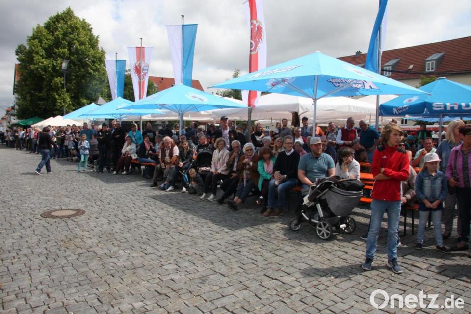 Dafür sorgten auch die „Hankerler“, die Schweinebraten aus dem Backofen auf der Karte stehen hatten, zudem auch der Tourismusverein mit knusprigem Dotsch, oder – neben unzähligen weiteren Leckereien – auch der Pizzastand aus Schönhaid. Kaffee und Kuchen bot der Frauenbund im Rathausfoyer an. Draußen hatte die CSU, gemeinsam mit der Frauen-Union und der JU, eine Weinlaube errichtet. An rund 40 Verkaufs-, Aktions- und Gourmetständen tummelten sich die längst nicht mehr zählbaren Gäste.