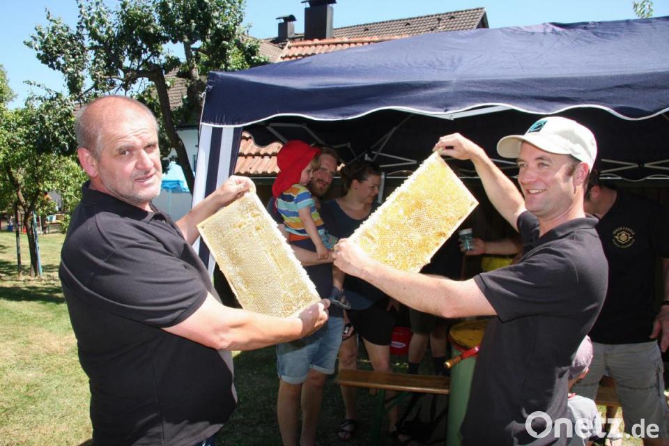 Fragen beantwortete Vorsitzender Hubert Greil, der auch das neu erworbene Zubehör vorstellte und die Handhabung des Vereinseigentums erklärte. Gekauft hat man es sich mit Hilfe von Fördergeldern, so dass man erfolgreich arbeiten und qualitativ hochwertigen Honig anbieten könne. Zufrieden sei man auch mit der Nachwuchsarbeit, wie an anderer Stelle zu hören war. Das Interesse sei steigend - und zwar nicht erst seit dem Volksbegehren zur Rettung der Bienen. An einem Kaffee- und Kuchenstand war für das leibliche Wohl der Besucher gesorgt. Und man konnte den "Tag des offenen Bienenhauses" auch nutzen, um leere Honiggläser gegen volle einzutauschen. An gefüllten Gläsern, versehen mit dem bekannten "Echter-Deutscher-Honig"-Etikett", das auch den Namen und die Anschrift des Imkers zeigt, herrschte kein Mangel.