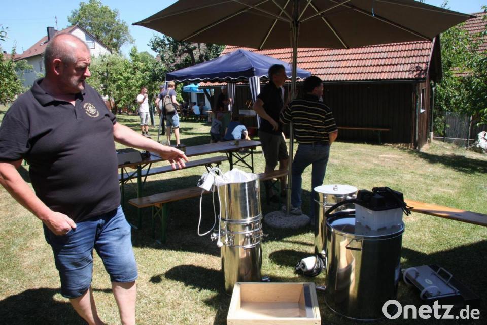 Florian Beer ist stolz auf seine Bienen und das, was sie produzieren, schließlich darf der Kreuzberg-Honig das Prädikat "Gold" tragen. Damit wurde bestätigt, dass der Honig zu den besten Bayerns gehöre. Auch die Ware seiner Imker- und Vereinskollegen hat Prädikate bekommen. In der Bienenbehausung hat Beer eine kleine "Forschungsanstalt" eingerichtet. Durch das Mikroskop konnten die Besucher winzige Blütenpollen, die von einem nahen Rapsfeld stammten, etwas genauer betrachten. Zudem durften Honigwaben bestaunt werden.
