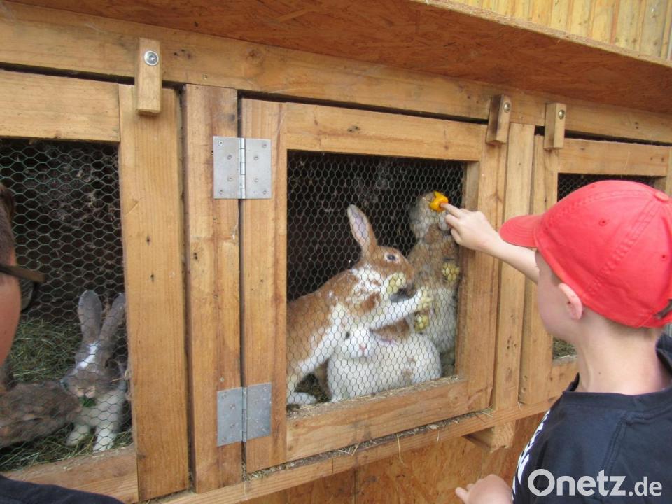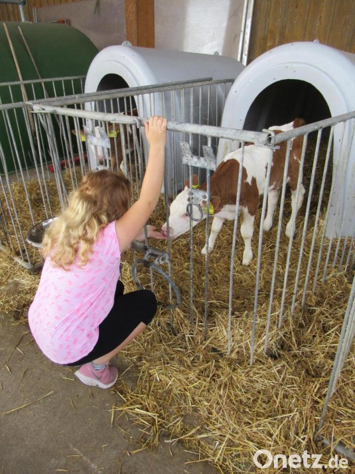 Beim Eingang zum Stall befand sich der „Kälberkindergarten“, der besonders von den zahlreichen Mädchen umlagert wurde. Hier fütterten sie den kleinen Kälbchen frisches Heu. Diese dankten es ihnen mit einem feuchten Ablecken ihrer kleinen Hände. Auch ein Hasenstall begeisterte die Kinder.