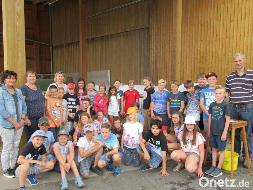 Die Bäuerin zeigte genau den Weg der Milch auf, und dass zweimal am Tag und sieben Tage die Woche die Kühe gemolken werden müssen. Bezugnehmend zum Heimat- und Sachkundeunterricht erfragte die Landwirtin auch die tägliche Futterration einer Kuh und auch den Wasserbedarf besonders bei hohen Temperaturen. So erfuhren die Kinder, dass eine Kuh etwa 50 Kilogramm Heu und Silage sowie Kraftfutter benötigt und etwa 100 Liter Wasser braucht, um täglich Milch zu geben.
