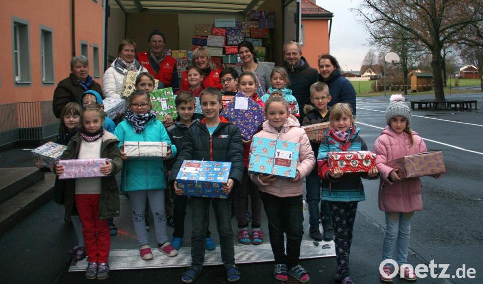 Etwa 160 bunte Päckchen schickten die Grundschüler aus Wiesau, Falkenberg und Friedenfels auf eine weite Reise, um damit Buben und Mädchen in Not eine Freude zu bereiten. In die Spendenaktion, zu der die internationale Hilfsorganisation "Humedica" aufgerufen hatte, waren diesmal auch die Wiesauer und Fuchsmühler Kindergärten eingebunden. Unterstützt wurde das "Schenken mit Herz" vom Grundschulbeirat, der Schulleitung und den Landfrauen im Landkreis. Als Verpackungsmaterial dienten Schuhkartons und Geschenkpapier. Gesammelt wurden Kuscheltiere, Süßigkeiten, Stifte und Malbücher, die im Kosovo, Rumänien und Albanien für Freude sorgen werden. Zudem wurden Körperpflegemittel, Schals und warme Handschuhe beigelegt. "Wir schenken etwas her, um anderen ein schönes Weihnachtsfest zu bereiten", betonte Schulleiterin Inge Dick. Die Sache sei eine "Herzensangelegenheit", fügte der Vorsitzende des Elternbeirates, Bernhard Rosner, hinzu. Ein Lkw holte die Weihnachtsgaben im Pausenhof ab. Die ehrenamtlichen Helfer Irmi Stollovsky und Rudi Nitschke versprachen, die Geschenke sofort weiterzuleiten. Beim Einladen halfen die Landfrauen Elfriede Stock und Irmgard Zintl (von links), die Elternbeiratsvorsitzenden Gerlinde Jähring (Falkenberg) und Bernhard Rosner (Wiesau), und Rektorin Inge Dick.