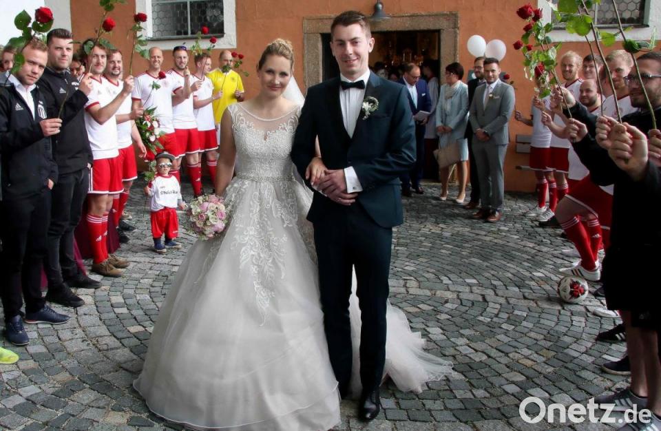 Für den Brautgottesdienst konnte das Gesangsduo Marina und Magdalena gewonnen werden. Für Spaß und Spiel dagegen waren die Sportfreunde zuständig, die rote Rosen und Luftballons hielten, um zu gratulieren. Zudem hatten sie auch einen Hindernisparcours aufgebaut, um das Ball-Talent zu testen, wobei die Braut zeigte, dass sie viel von ihrem sportlichen Bräutigam gelernt hatte. Danach hieß das Ziel Gästehaus Sankt Joseph in der Klosterstadt Waldsassen, wo die Hochzeit gefeiert wurde.