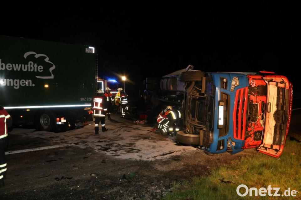Dauereinsatz für die Rettungskräfte auf der Autobahn A93 bei Wiesau: Keine zehn Stunden nachdem ein Silozug umgekippt war, krachte es in der Nacht zum Donnerstag kurz nach 1 Uhr auf der Gegenfahrbahn.