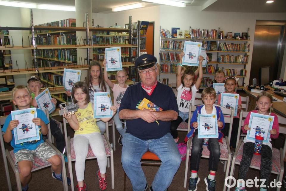 Am Ende wurden die Kinder, die mucksmäuschenstill gelauscht hatten, mit Urkunden, Ausmal- und Ausschneidebögen sowie einem Eis belohnt. Lok "Emma" nahm Robl wieder mit nach Fuchsmühl. In der Bücherei aber ließ er das Versprechen, bald mal wiederzukommen, um ein anderes Buch für Kinder oder Erwachsene auch oder eines seiner Werke persönlich vorzustellen bzw. Lesern ans Herz zu legen.