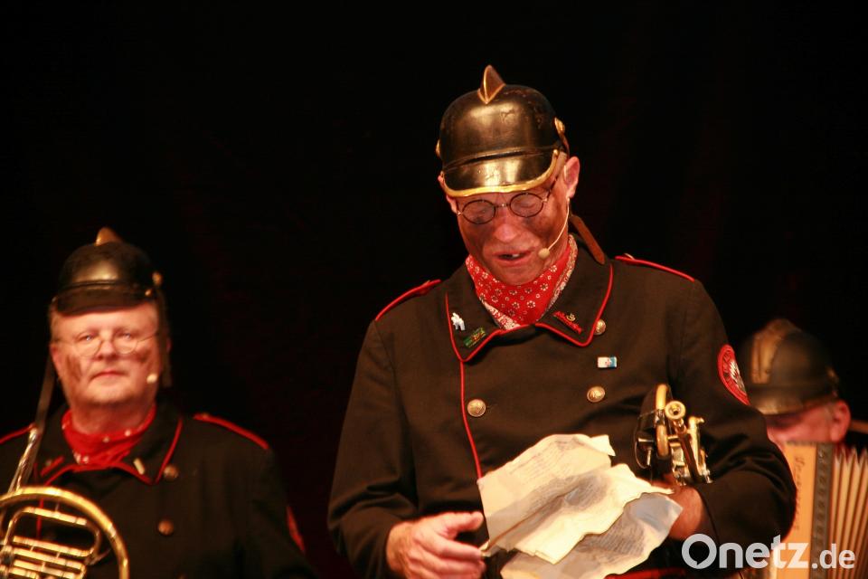 Unter den Klängen der rollenden Blechbüchsenarmee, bekannt von der Augsburger Puppenkiste, betrat die „Chaoten-Feuerwehr-Gruppe“ die Showbühne, von wo aus man das gespannte Publikum noch einmal begrüßte. In der ersten Reihe, neben Toni Dutz und Gattin Evi, hatte Regierungspräsident Axel Bartelt Platz genommen. Nicht weit davon saßen Ex-Staatsministerin Emilia Müller, Landrat Wolfgang Lippert, Pfarrer Martin Schlenk und Vertreter aus der Kommunalpolitik.