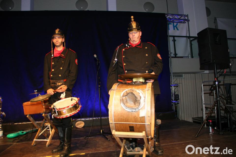 Kommandant Norbert Neugirg hatte seine musikalischen „Brandschützer“, aber auch sich selbst perfekt auf den Auftritt vorbereitet, um sich auf Bürgermeister Dutz einzuschießen. In seiner ureigenen Art bekannte der Windischeschenbacher Profi-Spötter: "Von Toni Dutz ward man gebeten, beim Nordgautag jetzt aufzutreten.“ Nur dem Anlass zu Liebe habe man die Reise angetreten. Dass der Besuch zugleich ein Karriereknick sei, erwähnte Neugirg am Rande. Toni Dutz musste sich einiges anhören. Die gereimten Sticheleien, auch über seine Körpergröße, ließ er sich amüsiert gefallen. Auch Bartelt, Lippert und Wiesauer Kommunalpolitiker, vor allem die SPD-Markträte, hatten unter dem Kommandanten kräftig zu leiden. Das Fest habe auch seine guten Seiten, stellte Neugirg mit Blick auf die fertigen Baustellen fest. Schließlich habe man nach langem Säumen entschlossen, hier mal aufzuräumen. „Dutz befahl den Bauhofdienern, rasch mal alles blank zu wienern.“ Neugirg schob nach: „Wenn er auch nicht der Größte ist, bleibt Dutz doch immer Optimist.“ Unterstützt wurde der uniformierte Redner von seiner „Löschtruppe“. Hingucker war erneut der aus Friedenfels angereiste Trommler Reinhard Stummreiter, der sich im Bühnengetümmel lautstark behaupten konnte. Gemeinsam verabschiedeten sich die Protagonisten gegen Mitternacht singend und musizierend von ihrem Publikum, das sich zum Applaudieren von den Stühlen erhob.