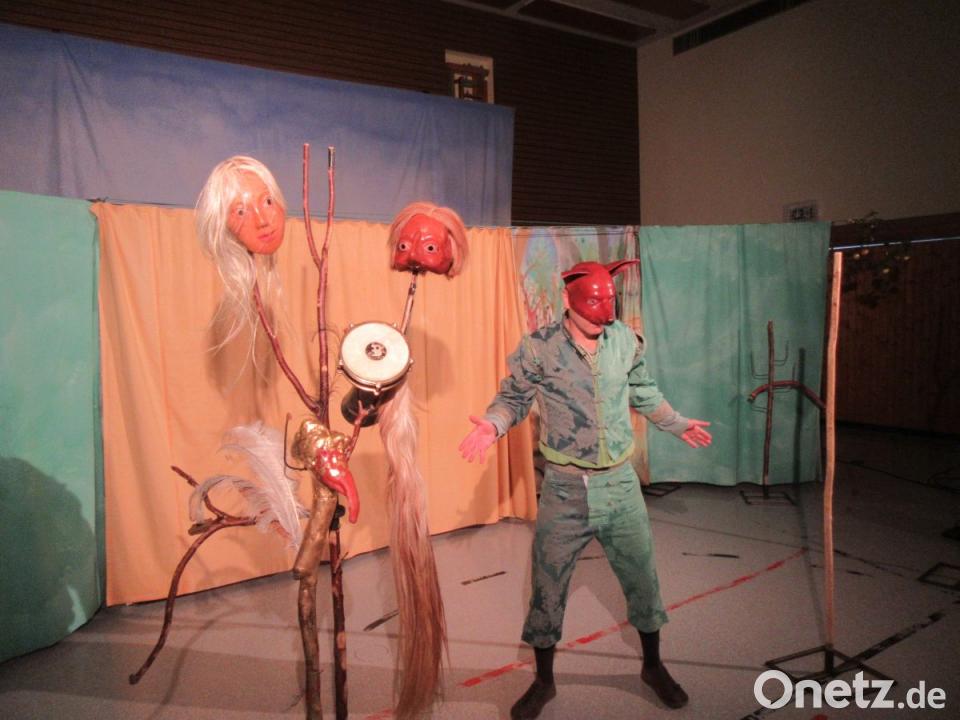 Ob einer der Könige oder der Prinzen, als Prinzessin oder Fuchs - egal - Moise Schmidt erwies sich als wahres Chamäleon der Märchenwelt. Er schlüpfte gekonnt in die verschiedenen Rollen, die das Stück zu bieten hat. Mit Feingefühl erweckte er die einzelnen Persönlichkeiten zum Leben. Masken - aufgesetzt, in der Hand gehalten oder auf Stangen hängend - wurden glaubwürdig zum lebendigen Gesprächspartner in seiner Mischung aus Erzähltheater und Schauspielerei. Viel Begeisterung erzeugte er zusätzlich mit seinen Musikeffekten.