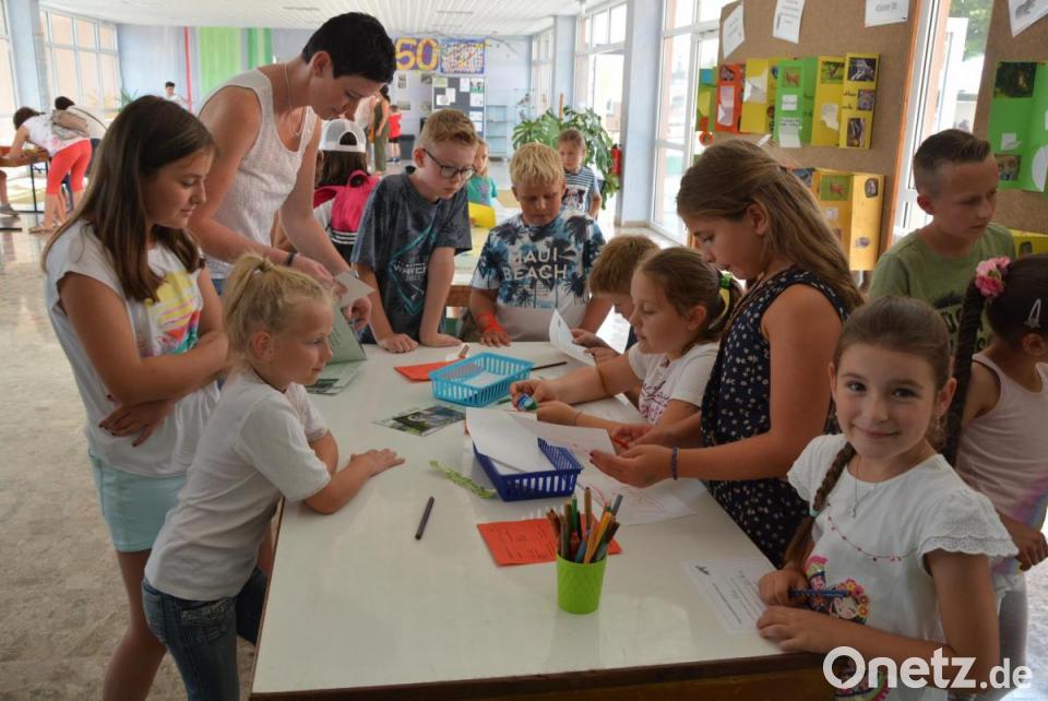 Schulleiterin Inge Dick freute sich über das Kommen aller 155 Schüler aus den acht Klassen, die vier Stunden lang das Fest vergnügt feierten. Auch zeigten sie Engagement. Höhepunkte waren die Theateraufführung „Das kleine Gespenst“, ein Flohmarkt der vierten Klassen und eine Ausstellung, an der sich alle Klassen beteiligten. Weiter wurde ein Insektenhotel errichtet.