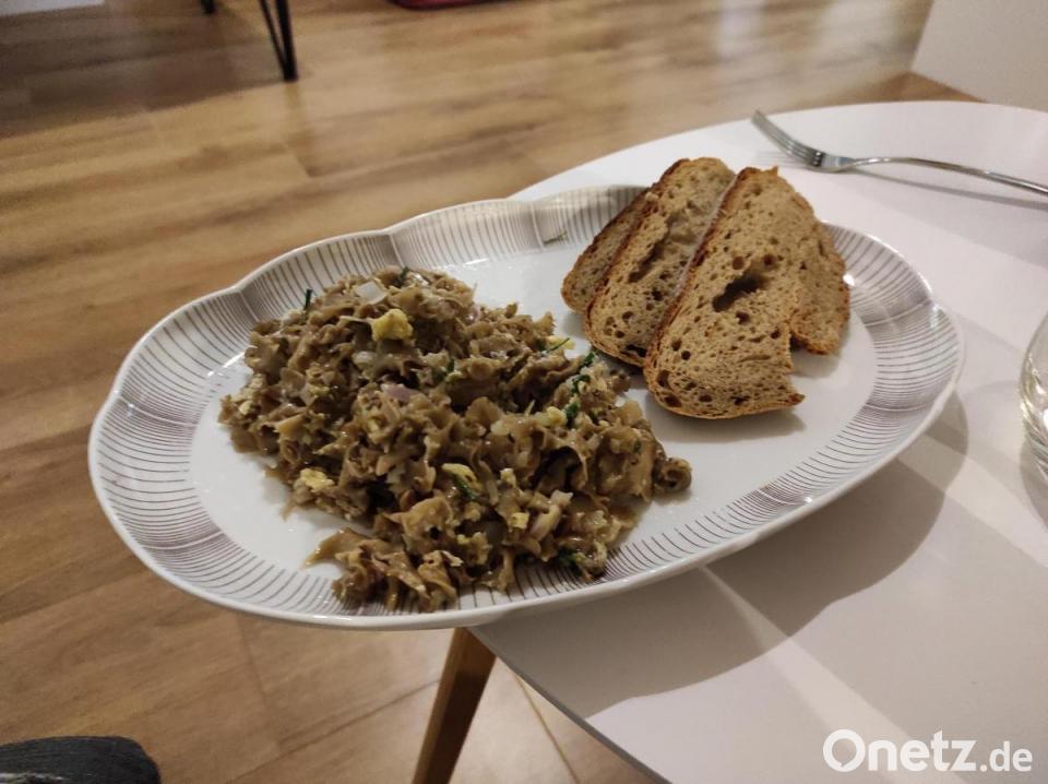 Die Fette Henne hat sich Jens Kamm noch am Wochenende schmecken lassen. Sie ergab knapp drei Portionen. Mit Ei, Kräutern, Zwiebel, Kümmel, einem Schuss Sahne hat er die Krause Glucke in einer Pfanne mit Butter gebraten.