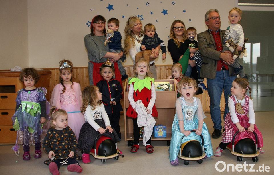 Das Geld stammt aus seinem persönlichen Spendentopf und nicht etwa aus der Gemeindekasse, wie von ihm selber zu erfahren war. „Das kleine Möbelstück (in der Bildmitte), wofür Dutz rund 400 Euro gestiftet hat, ist Teil eines Zubehör-Angebotes, das aktuell ein deutscher Verlag anbietet“, informierte Kindergartenleiterin Anette Gleißner. Über die Unterstützung zeigte sich die Leiterin der Einrichtung dankbar. „Wir alle freuen uns sehr darüber“, ergänzte sie bei der Übergabe, bei der auch kostümierte Buben und Mädchen (an diesem Tag war Märchenbuch-Stunde), zudem auch eine Abordnung der Erzieherinnen anwesend waren.