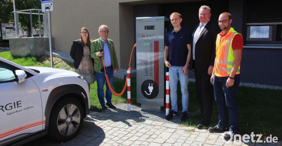 Bürgermeister Toni Dutz nahm gemeinsam mit N-Ergie-Kundenmanager Michael Lingg und der Ansprechpartnerin für Elektromobilität im Nürnberger Unternehmen, Doreen Ibrahimovic, die Ladestation in Betrieb. Die Säule, die an der Ostseite des Verwaltungsgebäudes an der Alfons-Goppel-Straße steht und von N-Ergie gewartet wird, verfügt über zwei Typ2-Steckdosen mit einer Leistung von je 22 Kilowatt. Die zwei anliegenden Parkplätze seien ausschließlich für Elektroautos vorgesehen, die hier geladen werden, erklärte die Vertreterin im Gespräch mit Oberpfalz-Medien.