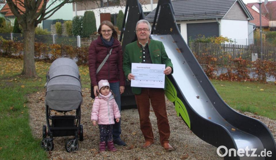 Eingelöst wurde das auf dem Fest gegebene Versprechen schon wenige Tage danach. Das von Valentina gewünschte Spielgerät wurde zum Preis von rund 4000 Euro bei einem Fachhändler in Auftrag gegeben. Den symbolischen Scheck über 1000 Euro übergab Dutz kürzlich an Vertreterinnen aus Tirschnitz auf dem dortigen Spielplatz. Dort sicherte er Valentina und deren Mutter Theresia zu, dass die Mitarbeiter des Bauhofs im Frühjahr kommenden Jahres in der Tirschnitzer Dorfmitte anrücken und die Rutsche aufstellen werden. "Geliefert wurde sie noch nicht", berichtete Dutz von einer langen Lieferzeit.