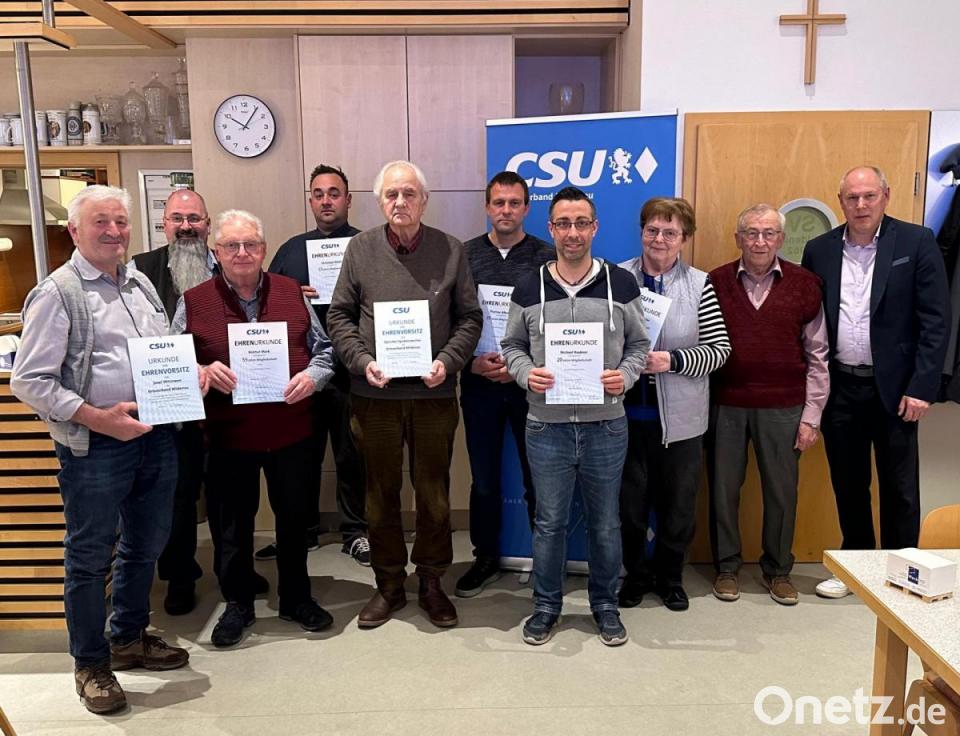 Höhepunkt der Jahreshauptversammlung des CSU-Ortsverbandes war die Ehrung verdienter Mitglieder. Die Auszeichnungen im Sportheim nahm Vorsitzender Thomas Wittmann zusammen mit Zweitem Bürgermeister Markus Preisinger vor.