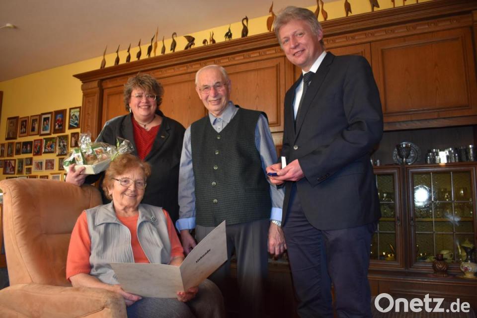 Bürgermeister Lothar Müller hatte am Mittwoch einiges im Gepäck, als er die Familie Trisl in Wildenau besuchte. Der Bürgermeister der Marktgemeinde Plößberg überreichte in Vertretung für das Bayerische Staatsministerium für Familie, Arbeit und Soziales dem Ehepaar Wilhelm (91) und Hildegard Trisl (83) eine Dank- und Ehrenurkunde sowie eine Medaille als Anerkennung für die aufopfernde Pflege, die beide ihrer Tochter Christine (62) spendeten. Zusätzlich gab es noch ein Geschenkkörbchen vom Landratsamt.