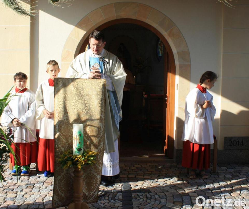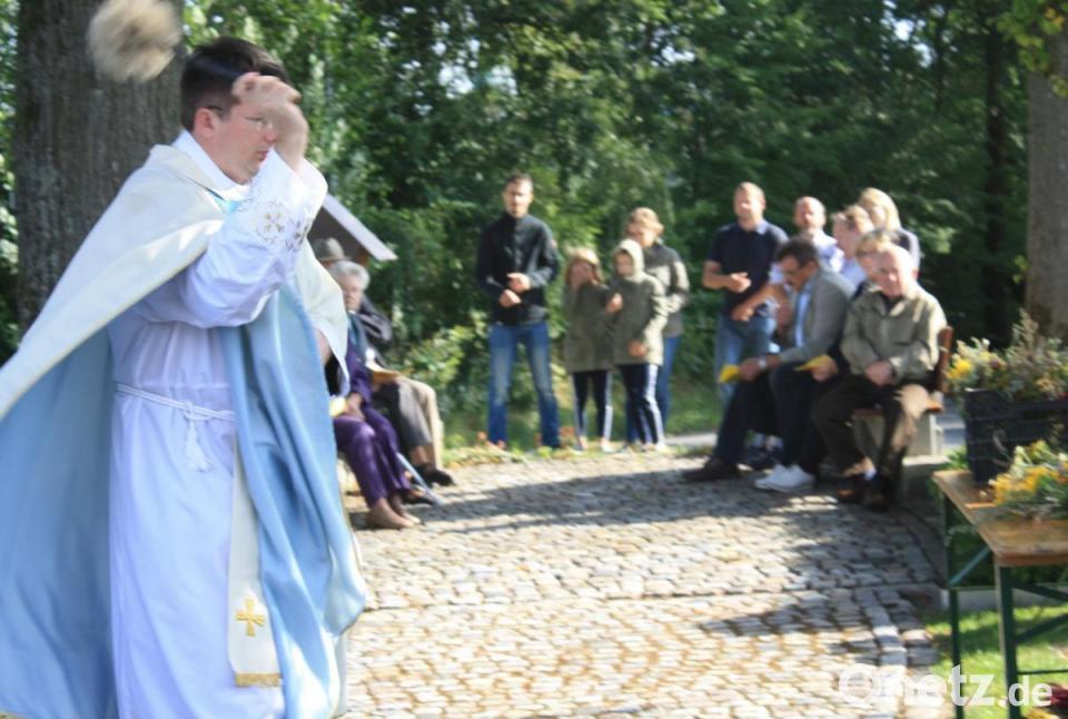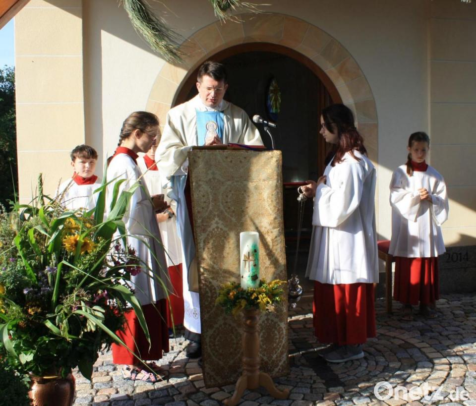 In seiner Predigt ging Pfarradministrator Konrad Ackermann auf das große Geheimnis der Aufnahme Mariens in den Himmel mit Leib und Seele ein und stellte heraus, dass uns Gott mit Maria eine neue Gnade für unsere eigene Erlösung gegeben hat. Eingangs seiner Predigt erwähnte Ackermann, dass uns mit der Feier der Aufnahme Mariens in den Himmel klar werden soll, dass auch wir einmal bei Gott sein sollen. Der Prediger ging auch kurz darauf ein, dass teilweise die Würde des Menschen mit Füßen getreten wird und mit dem Leben des Menschen experimentiert wird. Das heutige Fest sage mehr, nämlich dass der Mensch das erste Geschöpf Gottes ist. Weiter führte der Prediger aus, das durch Maria Gott zu uns Menschen gekommen ist. Das Fest Mariä Himmelfahrt sage uns, dass Gott uns in seine Herrlichkeit ruft.