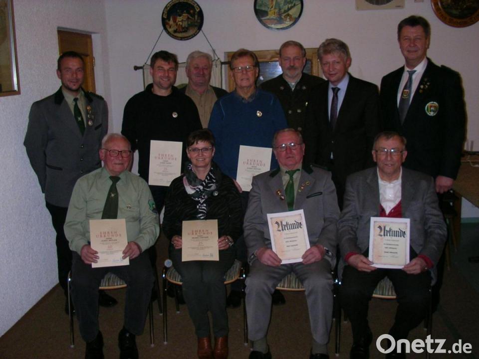 Für 40 Jahre: Gerald Röckl, Rudolf Scukanec. pSeit 50 Jahren ist Josef Zeitler (Boder Sepp), seit 60 Jahren Josef Zeitler (Schmid Sepp) Mitglied. Für 55-jährige Treue erhielten Josef Albrecht, Karl Haubner, Josef Janker, Karl Uschold und Josef Wittmann eine Urkunde des Vereins. Eine besondere Überraschung gab es für Zweiten Schützenmeister Harald Albrecht. Er erhielt die Gauehrennadel in Gold.