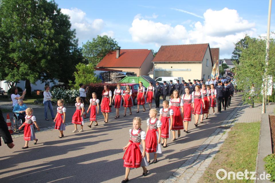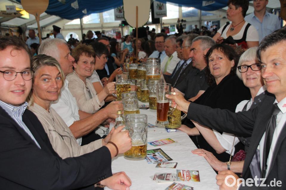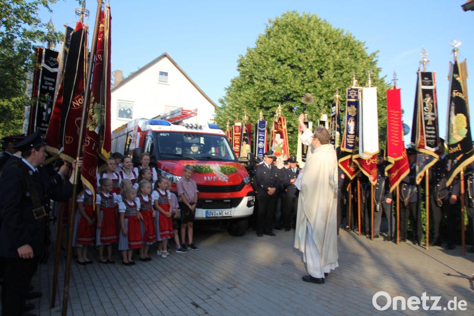 Nach dem Festgottesdienst ging es zum neuen Löschfahrzeug vor das Dorfgemeinschaftshaus. Die beiden Priester segneten das Fahrzeug und stellten es unter den Schutz des Heiligen Florian. Nach dem Einmarsch ins Bierzelt gab zunächst die Kapelle Bayerisch Blech den Ton an, bevor Festleiter Michael Schlagenhaufer das Wort hatte. Dann gratulierten Bürgermeisterin Christa Zapf, Bundestagsabgeordnete Marianne Schieder und Kreisbrandrat Robert Heinfling der Wehr zu ihrem Neuerwerb.