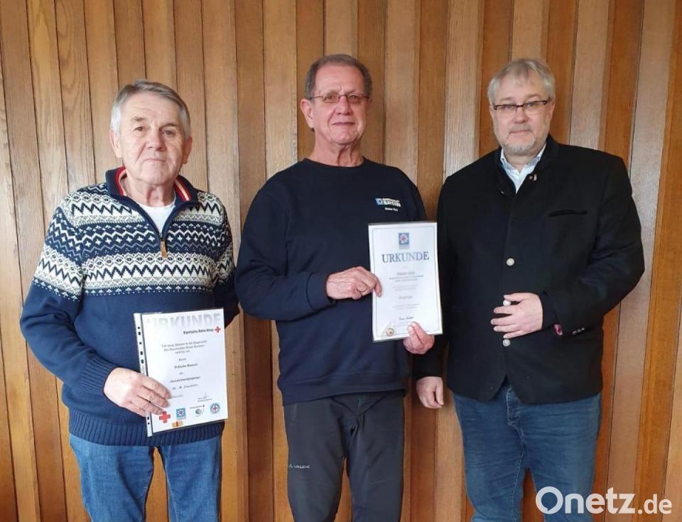 Für 40 Jahre Mitgliedschaft wurden im Anschluss Wilhelm Rausch und Dieter Güll geehrt. Wilhelm Rausch war als stellvertretender Gruppenleiter im Amt und als zuverlässiger Fahrzeugwart tätig. Dieter Güll trat am ebenso 1982 in die damalige Bergwacht-Gruppe Schönseer Land als Anwärter ein. Zuvor war er schon 20 Jahre Mitglied der Wasserwacht Ortsgruppe Straubing. Güll qualifizierte sich zum Ausbilder für Sommerrettung, Winterrettung, Luftrettung und Naturschutz. Zudem führte er unzählige Ausbildungen als Ausbilder für Erste Hilfe durch. Seit seinem Eintritt in die Bergwacht übernahm er Führungspositionen, so als Verantwortlicher für die Finanzen, Ausbildungsleiter, Luftretter, Einsatzleiter und Bereitschaftsleiter. Zudem ist er noch als verantwortlicher Einsatzleiter im Amt. Als Vertreter der Bergwacht ist er seit über 37 Jahren auch Mitglied in der Vorstandschaft des BRK-Kreisverbandes Schwandorf.