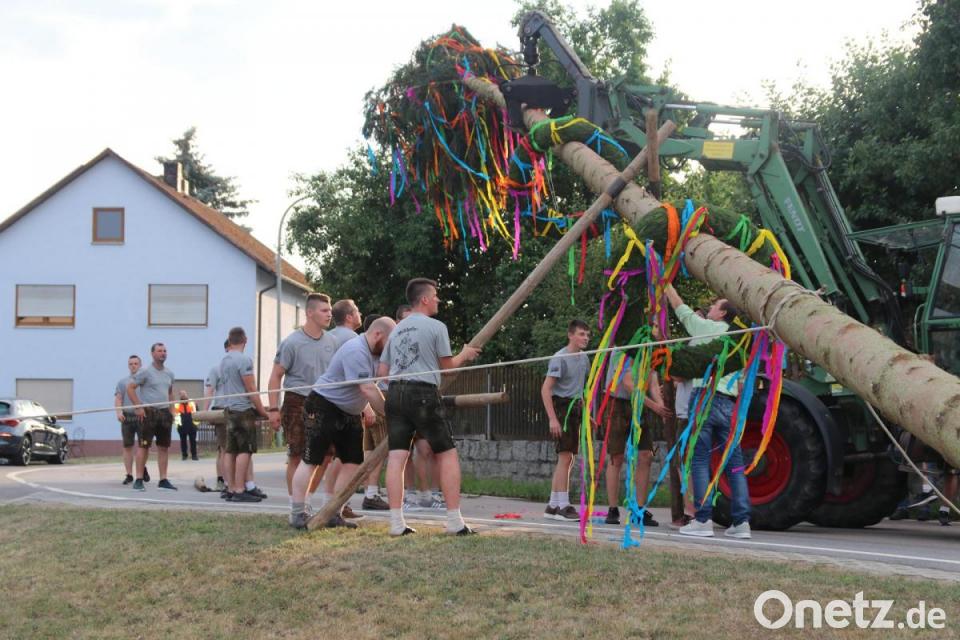Kirwaburschen beim Baumaufstellen in Willhof