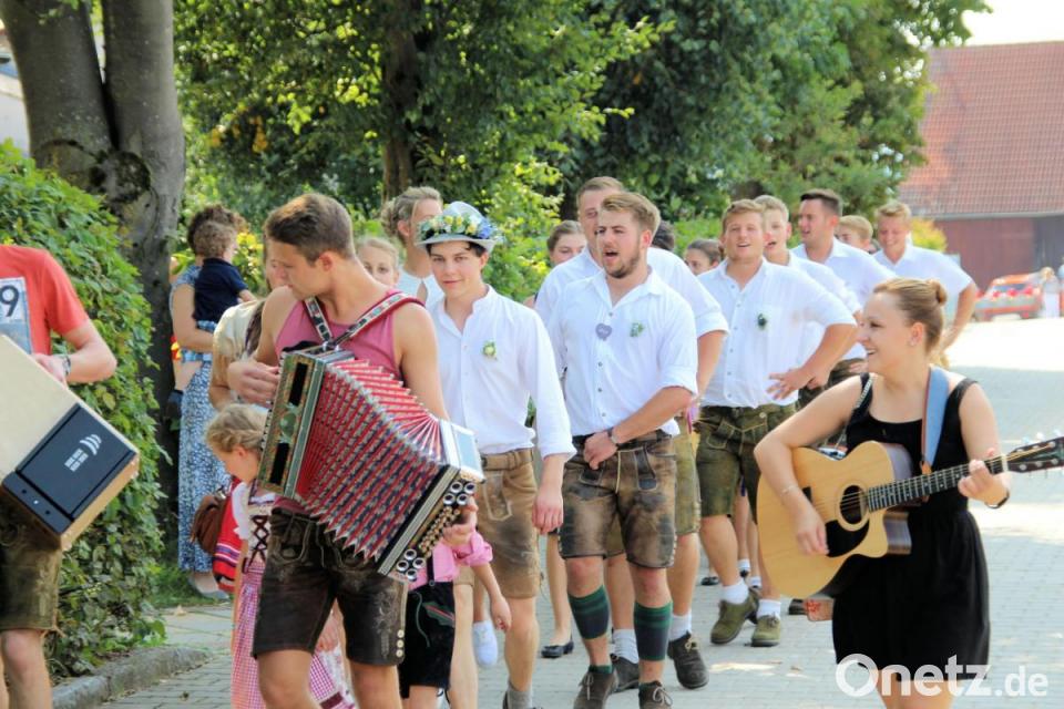 Traditionell wurde das Kirchweihfest am Sonntag mit einem Gottesdienst in der Filialkirche mit Pfarrer Werner Sulzer begonnen. Hinterher hatten die freiwilligen Helfer der Dorfvereine alle Hände voll zu tun, denn es herrschte reger Betrieb am Dorfgemeinschaftshaus. Bereits zum Mittagstisch hatten sich sehr viele Besucher eingefunden. Die schattigen Plätze um das Dorfgemeinschaftshaus waren gefüllt. Für die nötige Kirwamusik zum Frühschoppen sorgten die Übler-Boum.