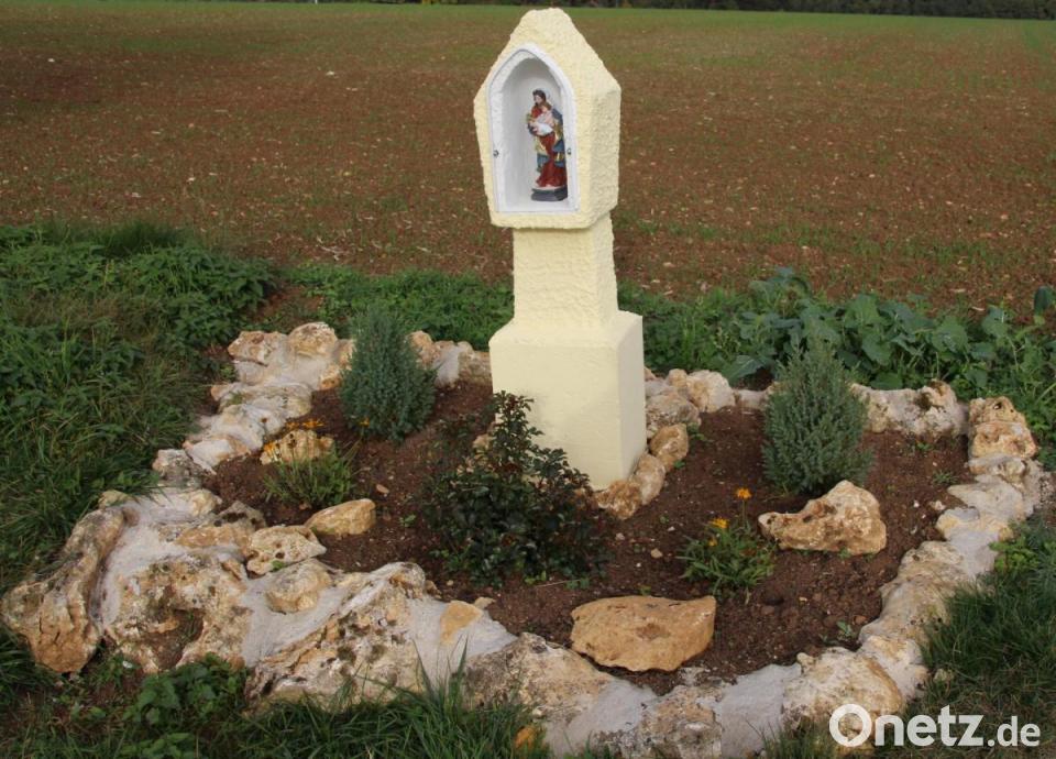 An der Straße von Schmidmühlen nach Winbuch steht ein Marterl, das Georg Koller nun restauriert hat. Dieses Flurdenkmal hatten seine Eltern Elisabeth und Ludwig Koller im Jahr 1960 hier aufgestellt, damals allerdings an einem Baum befestigt. Seine Eltern hätten ihm mit auf dem Weg gegeben, das Marterl weiterhin zu pflegen, sagt Koller – was er auch getan habe. Doch nun sei eine größere Restaurierungsmaßnahme nötig gewesen. Unter anderem wurde das Marterl neu gestrichen und eine neue Muttergottes-Figur angeschafft.