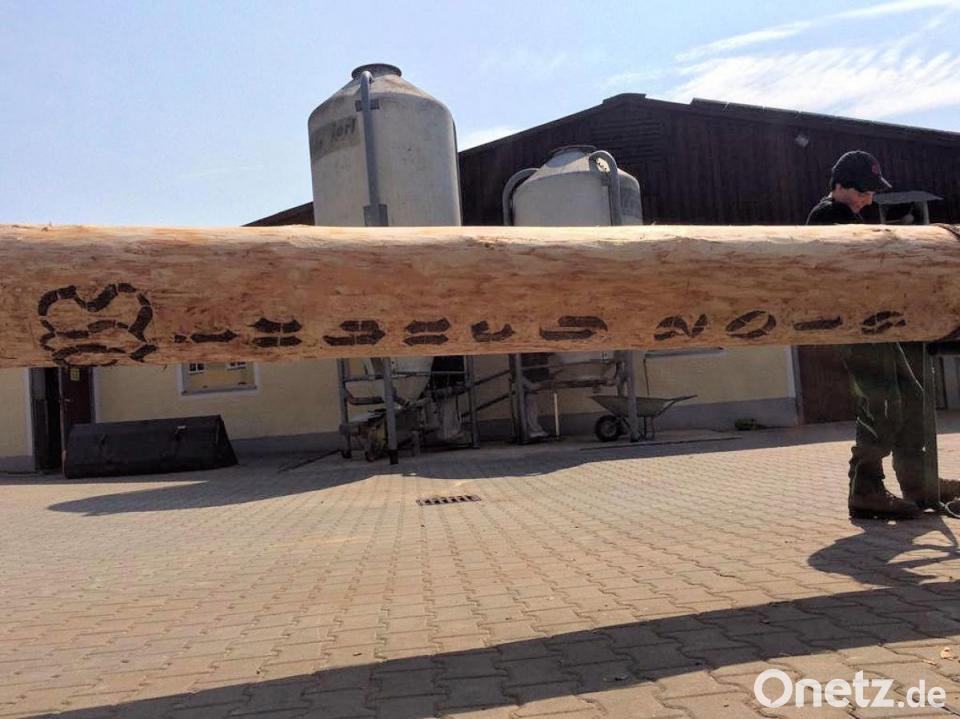 Das Wahrzeichen der Winbucher Kirwa steht mit 36,5 Metern Länge neben dem Dorfgemeinschaftshaus und wurde mit einem Kran aufgestellt. Bereits am Donnerstag hatten die Kirwamoidln sich auf den Weg gemacht und Sträußln zum Binden der Kränze geholt. Traditionell machten sich am Freitag die freiwilligen Helfer auf, um einen geeigneten Baum zu suchen. Gestiftet und umgesägt wurde der Baum von Georg Ettenhuber. Für den Transport war wieder Xaver Popp mit seinem Oldtimer zuständig.