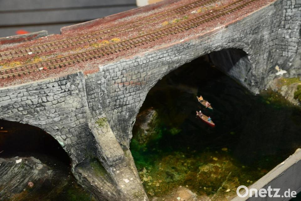 Jedes Modul ist für sich komplett durchdacht. Da sind zwei Kanus unter einer Brücke samt den Kanufahrern zu sehen, da geht ein Jäger zur Jagd und erlegt ein Wildschwein, eine Fähre nimmt Zug und Lastwagen auf, dreht eine Runde im echten Wasser und wird wieder entladen, ein frisch getrautes Paar verlässt die Kirche und geht zum geschmückten Brautauto. Ein Disco-Bus ist mit 240 LED-Lämpchen ausgestattet und dreht wie so viele anderer Lastkraftwagen und Omnibusse die Runden im „Faller-Car-System“. Die Mitglieder der Modellbahnfreunde, zu erkennen in ihren leuchtend roten Shirts oder Hemden, beobachten die Anlagen unentwegt. Manche Mitglieder sitzen an den riesigen Schaltpulten wie in echten Stellwerken.